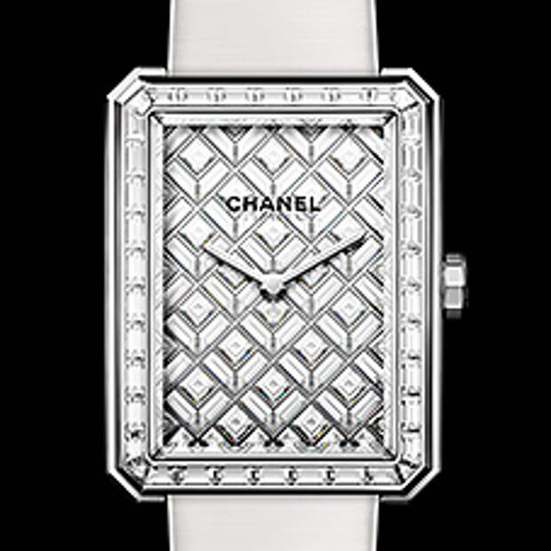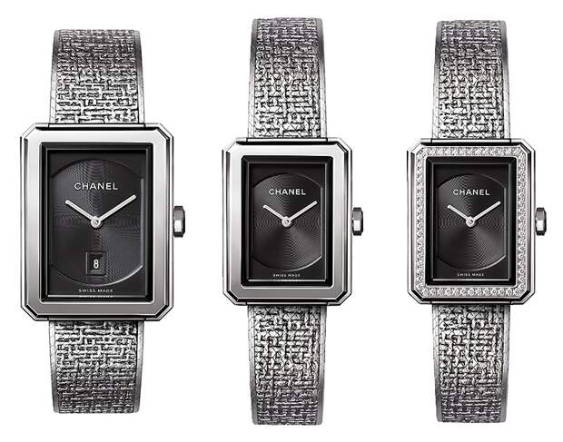 Вариация Boy.Friend Tweed имеет гибкий стальной браслет миланского плетения с гравировкой, воспроизводящей фактуру знаменитого шанелевского твида. В Москве эти часы появятся в сентябре.