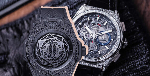 Последняя версия Big Bang Sang Bleu Pave усыпана бриллиантами: паве из 132 камней декорирован безель, еще 256 камней украшают корпус …