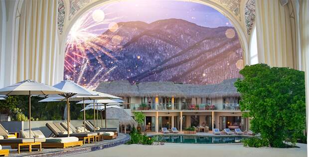 Главная ночь пройдет в банкетном зале «Кристалл», который превратится в Императорский театр, украшенный живыми цветами. Гостей встретят артисты и струнный квартет. В программе фотосессия, шампанское и праздничное меню от шеф-повара Вадима Палажченко, включающее мясное и рыбное ассорти, сыры, салат «Оливье», сельдь под шубой, несколько видов горячего и десерты. Гостей будут развлекать Владимир Пресняков и Анжелика Варум.