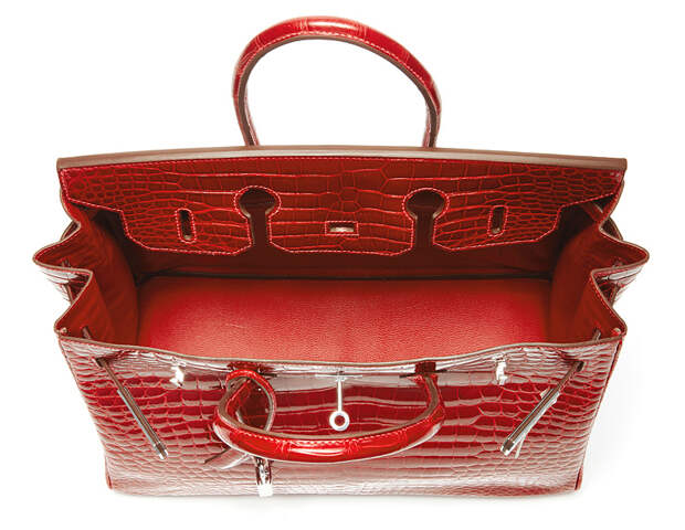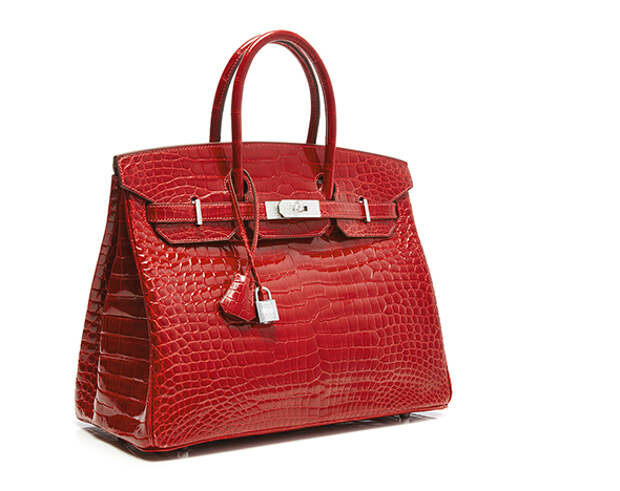 Сумка Birkin высотой 35 см из кожи гребнистого крокодила редкого красного оттенка, который в Hermes называют «braise», на днях побила рекорд, став на данный момент самой дорогой сумкой в мире. Предыдущий принадлежал тоже Birkin из кожи крокодила цвета фуксии с золотой фурнитурой, украшенной бриллиантами, проданной в Гонконге в мае прошлого года на Christie’s за $221 844.