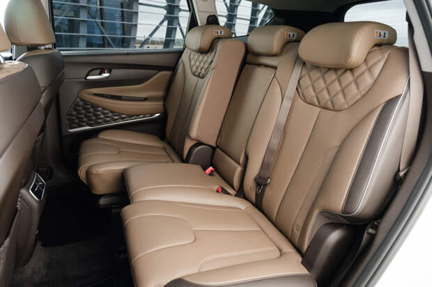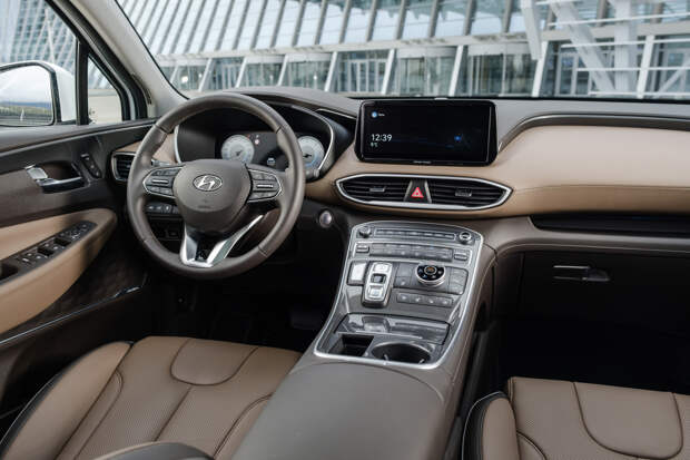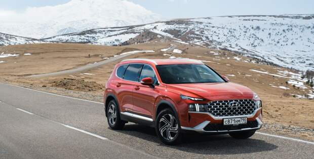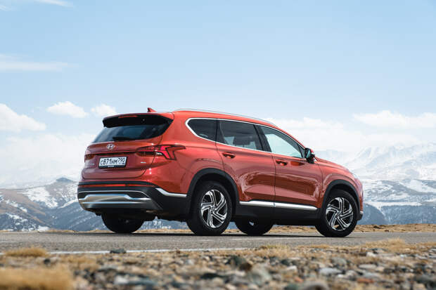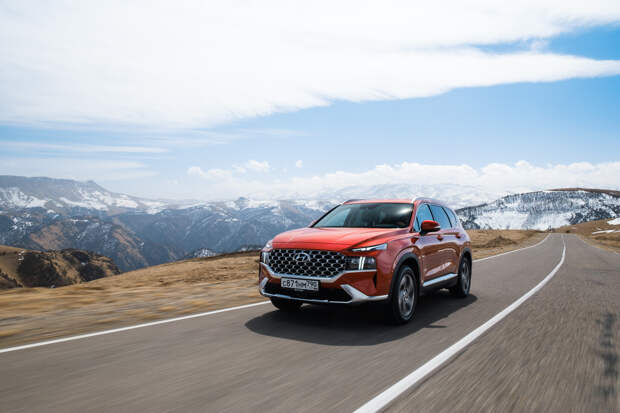 После глобального рестайлинга кроссовер Hyundai Santa Fe стал длиннее, шире и выше своего предшественника. Передняя часть автомобиля выглядит шире за счет большой хромированной решетки радиатора с характерными элементами в форме сот и бампера новой формы, а раздвоенный блок фар головного света и Т-образные светодиодные дневные ходовые огни формируют силуэт обновленного кроссовера.
