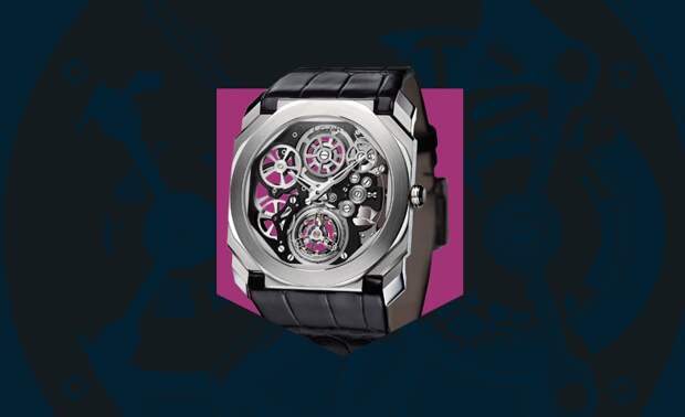 Ультратонкий скелетон Royal Oak почти полностью изготовлен из розового золота. Кроме сатинированного браслета и корпуса с фирменным восьмиугольным безелем, из того же металла сделаны мосты и платина механизма. Модель выпущена в 50 экземплярах.