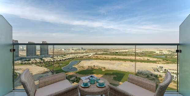 Отель сети Radisson расположен в получасе езды от делового центра Дубая. Название района Damac Hills происходит от местности: холмы Дамак создают красивое (хотя и условное — пустыня поглощает горизонт) природное окружение для современной архитектуры отеля. Тут спокойно, уединенно и нет городских толп.
