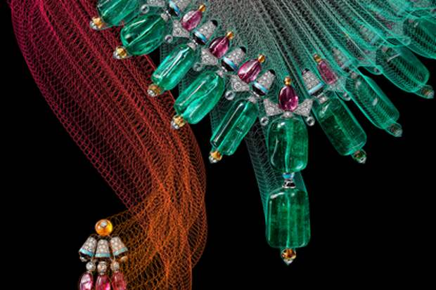 В колье Chromaphonia главную партитуру исполняют 22 афганских изумруда барочной формы (камни взяты из винтажного украшения), а помогают им более мелкие шпинели, мандариновые гранаты, бирюза.