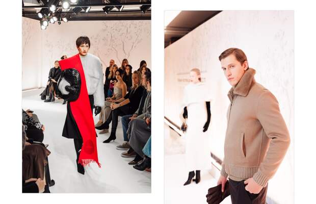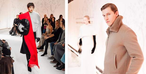 Сначала показали верхнюю группу одежды: шубы, пальто и дубленки MUST, Valentino, Agnona, Kiton и Bottega Veneta, дополненные аксессуарами — кожаными и трикотажными перчатками Kiton, Valentino, Agnelle и сумками Bottega Veneta, Jil Sander и Burberry.