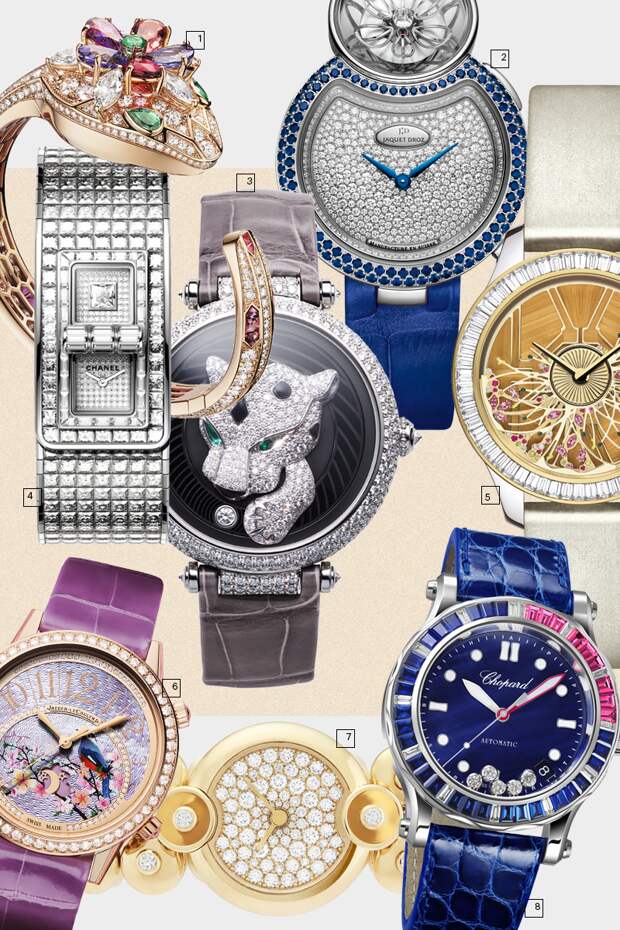 Женские ювелирные часы — не просто сверкающая бриллиантовая пыль на золотом корпусе и циферблате. В новом автоматоне Jaquet Droz независимо трудятся сразу два механизма: один управляет работой стрелок, другой заставляет раскрываться цветок лотоса в верхней части корпуса-восьмерки. Нижняя полностью усыпана бриллиантами и «обведена» по контуру синими сапфирами.