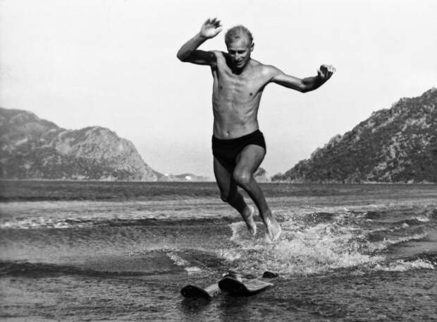 Герцог Эдинбургский во время катания на водных лыжах, Мармарис, Турция