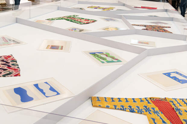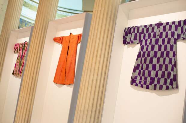 В залах Пушкинского музея среднеазиатские халаты и ткани соседствуют с послевоенной абстрактной живописью. До середины ноября здесь идет выставка «Восточный джаз / East West Jazz», собранная кураторами из коллекций Александра Клячина и Жана Клода Гандюра.