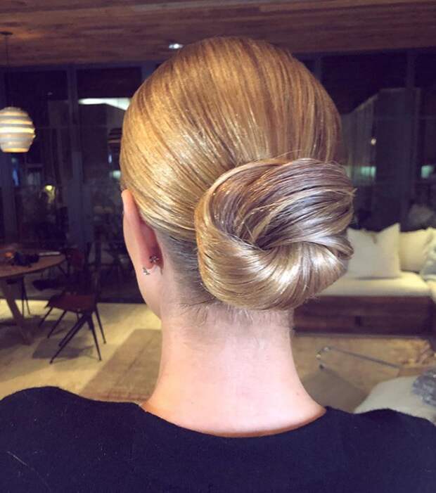 Для Роузи Хантингтон-Уайтли сделал гладкий пучок с использованием стайлинговых гаджетов GHD и средств Wella Professionals.