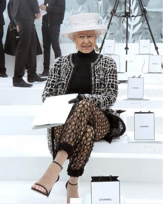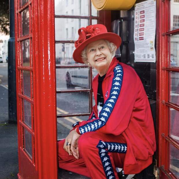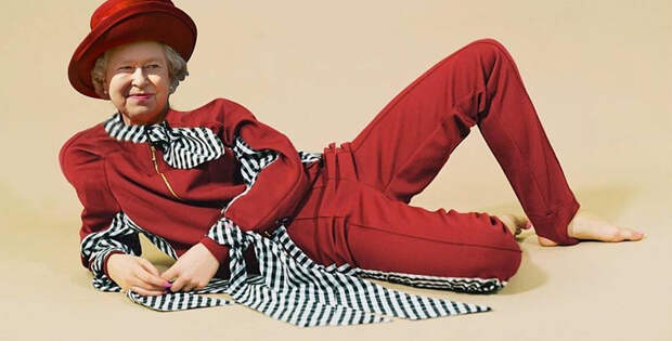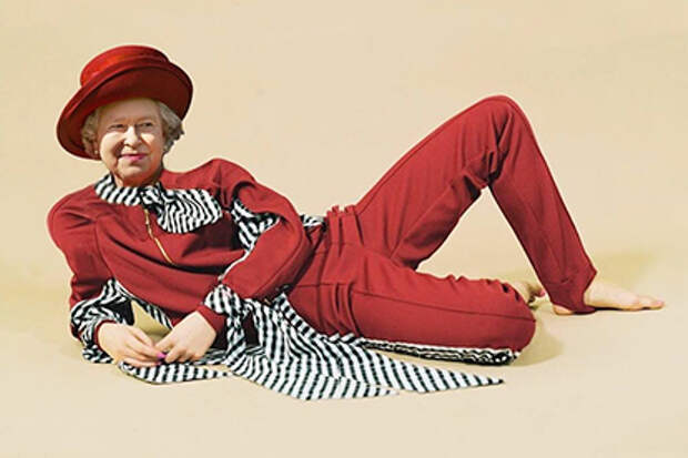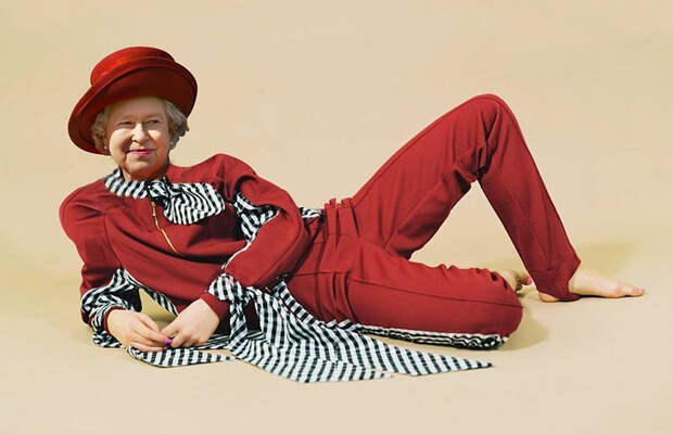 Чаще всего дизайнер «паразитирует» именно на нарядах королевы, цинично вырезая голову главы государства с официальных снимков и подставляя ее к фигурам моделей и знаменитостей.