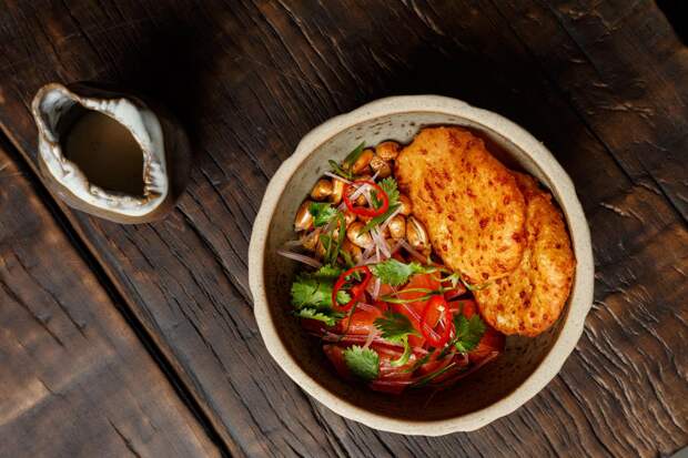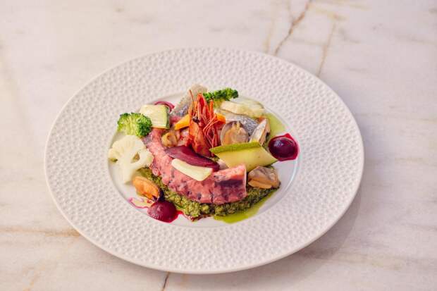 В меню картофельная запеканка-кауза с крабом, приправленная перечной пастой ахи амарильо и соком лайма, утиный антикучо, тако с рваной бараниной в травяном соусе и приготовленный на воке ломо сальтадо из вырезки быка. И конечно, севиче и тирадито — идеальные блюда для любых гастроэкспериментов. Севиче из гребешка сервируют с красным соусом leche de tigre на перце с чалакой и киноа, а лангустины — с зеленым опаленным авокадо и дыней. Не забыли и про сибирские акценты: в тирадито из сибаса появляется икра хариуса, …