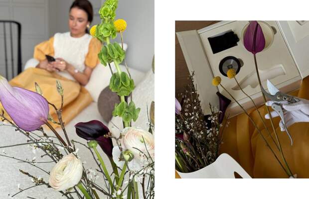 К клиенткам также приехали и батлеры — они доставили наборы для создания авторской цветочной композиции: вазу, кензан (держатель для икебаны), секатор, живые цветы и ветви.