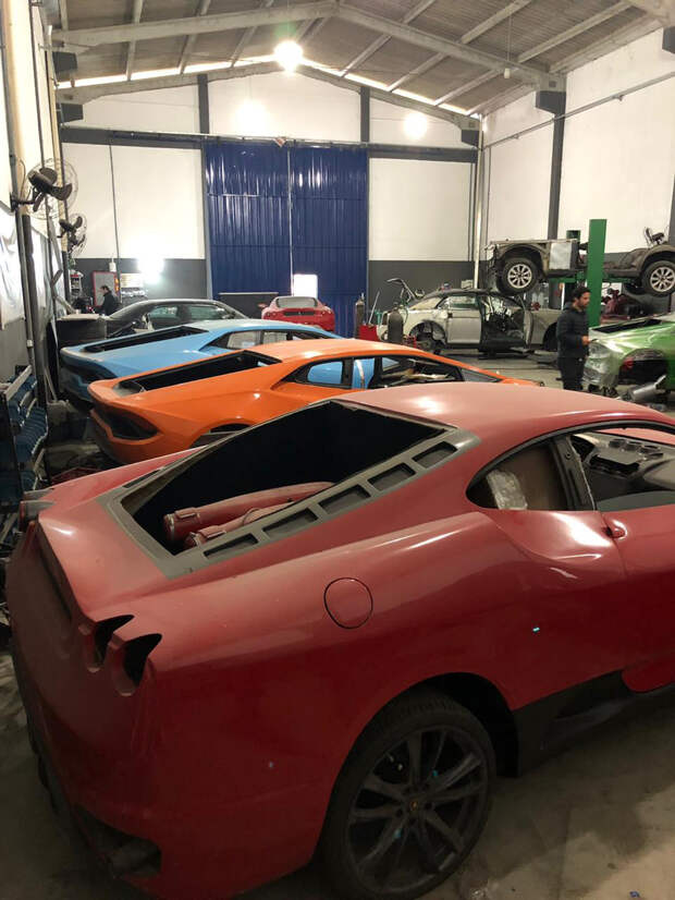 Среди обнаруженных во время рейда автомобилей были копии Lamborghini Gallardo и Huracán, а также Ferrari 430.