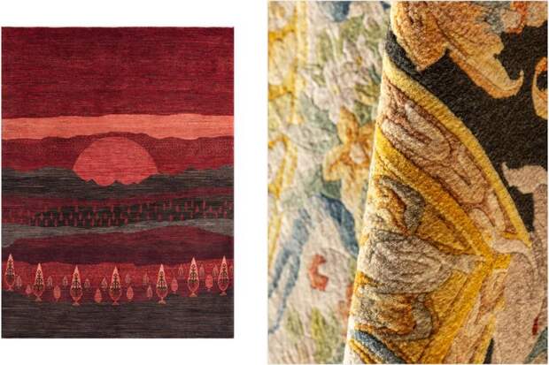 Несмотря на обилие дизайна с буйством красок, на выставке были представлены и популярные спокойные монохромные цветовые сочетания. Команда Art de Vivre предлагает обратить внимание на деликатный орнамент в коллекции Christopher Guy с преобладанием естественной палитры. Ковры бренда впишутся в интерьер практически любого стиля: от минимализма до ар-деко.