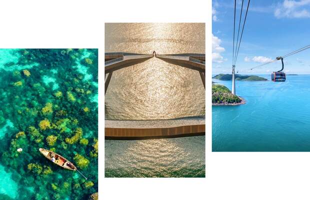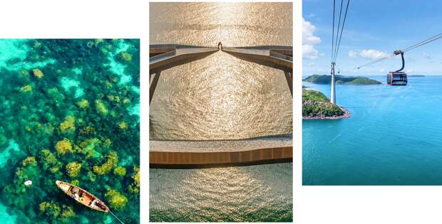 Канатная дорога длиной почти 8 км соединяет Фукуок с Ананасовым островом. Это расстояние вы преодолеете за 20 минут. Если боитесь высоты, не смотрите вниз ― канатка поднимается на высоту до 175 м. На Ананасовом острове находится аквапарк Aquatopia. Здесь больше 20 водных аттракционов, комплекс разделен на шесть тематических зон: Тропические фрукты, Морские существа, Пираты и другие. Самые захватывающие горки для экстремалов ― King and Queen Cobra и Sea Dragon. В лагуне Paradise Bay можно расслабиться на шезлонгах и насладиться солнцем. Для семей с детьми предусмотрены игровые зоны с мягкими горками. Народу немного, стоять по несколько часов в очередях перед аттракционами не придется. Билет на канатную дорогу и в аквапарк стоит $26.