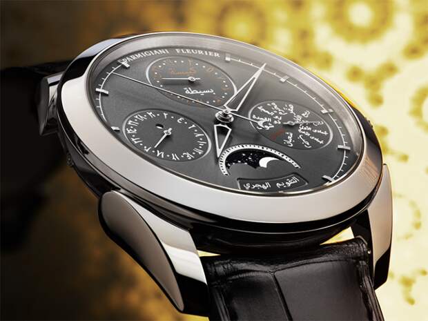 При этом месяцы не закреплены за временами года, как в григорианском календаре, а перемещаются по разным сезонам.Календарная система лунных циклов Хиджры впервые стала усложнением в наручных часах. Впрочем, модели Hijri Perpetual Calendar предшествовал экземпляр настольных часов, созданный Мишелем Пармиджани в 2011 году. Разработку функции вечного лунного календаря часовщик начал еще в 1993-м, за три года до основания марки Parmigiani Fleurier, во время реставрации карманных часов с календарем Хиджры.