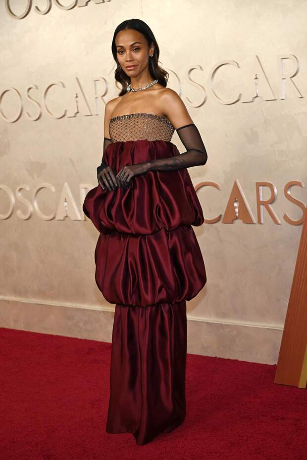 А вот неожиданным стал «метод-дрессинг» — когда актер одевается так же, как его герой. Этот тренд в прошлом году задал стилист Марго Робби, одевавший ее для промотура «Барби». На сей раз его поддержали Ариана Гранде и Синтия Эриво, сыгравшие подруг-антиподов в экранизации бродвейского мюзикла «Злая: сказка о ведьме Запада», и Лили-Роуз Депп. Зои Салдана в Saint LaurentЗои Салдана в платье Saint Laurent и украшениях Cartier забрала награду за лучшую женскую роль второго плана в мюзикле «Эмилия Перес». В ровно таком же оттенке у нее был костюм (тоже Saint Laurent) в ключевой для нее сцене фильма.