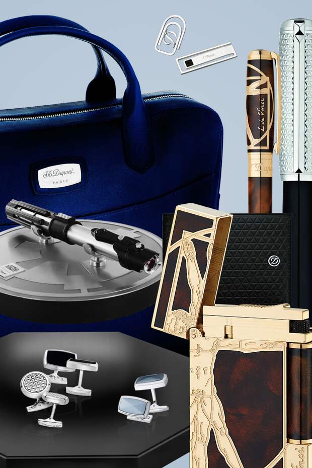 2 | Ручки Santos-Dumont. Колпачок из металла с матированной отделкой, черный композитный материал, детали с палладиевой отделкой, кабошон из синего каучука