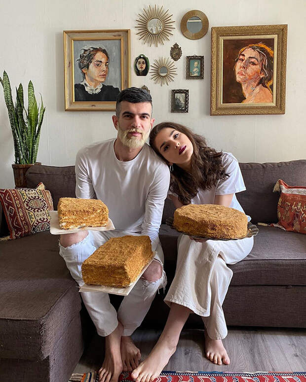 Вместо самопроб Амбарцум стал записывать рецепты борща, выстраивать целые пизанские башни из панкейков, печь хлеб и придумывать новые вариации из того, что «обнаружилось в холодильнике». На Пасху друзей ждали корзинки с куличами, желание порадовать их не пропало и после. «В апреле у нашей подруги Лели день рождения. Обычно мы собираемся шумной компанией, веселимся, а тут — карантин, все заперты дома, но это повод что ли отменять праздник? Конечно нет. И мы с Аней решили испечь медовик и отправить его Леле», — вспоминает Амбарцум. «Шутки ради записали сторис, мол, хотите торт? Мы вам его сделаем». Желающие обнаружились стремительно. Медовик — десерт из детства, и почувствовать снова …
