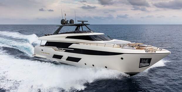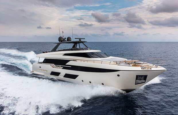 Яхта Ferretti 920 в полной мере воплощает полувековой опыт компании, знаменитой грациозными и быстроходными суднами. Главные особенности вышедшей моторной модели — длина в 28,5 метров и возможность развивать скорость до 28 узлов. Объем бака составляет 9000 литров.