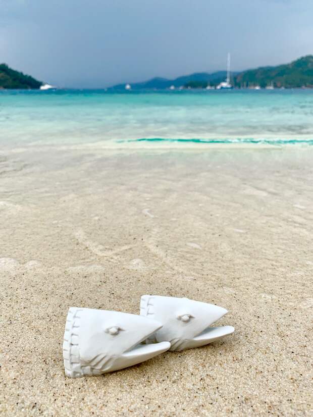 Статуэтки Hering на белоснежном пляже D-Resort Göcek — единственном в Геджеке