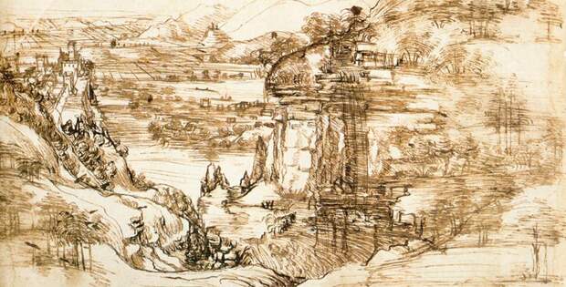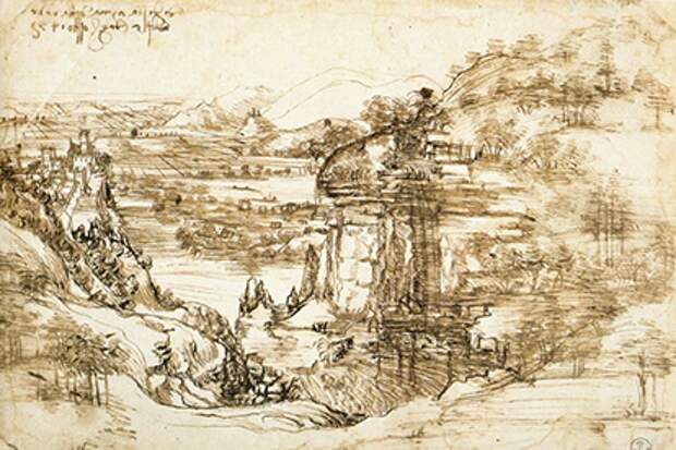 Леонардо да Винчи. Пейзаж Санта-Мария-делла-Неве, 1473