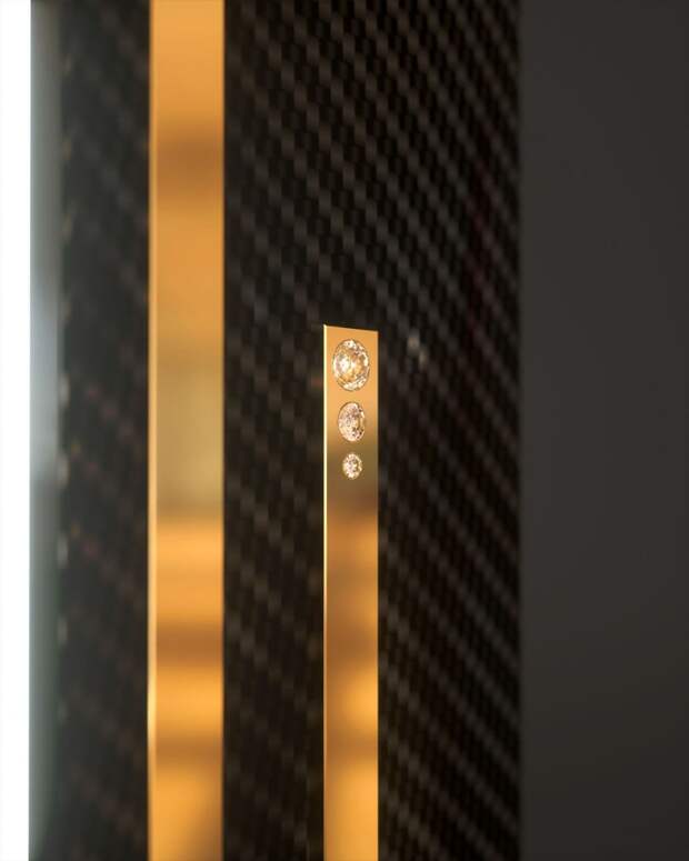 От основания до верхушки лампа украшена вставками из 18-каратного золота. Из драгоценного металла выполнены и 24 крошечных винта, скрепляющие детали конструкции. Все элементы Kubya изготовлены во Франции. Например, местные мастера-ювелиры вручную инкрустировали в плоскости лампы бриллианты.