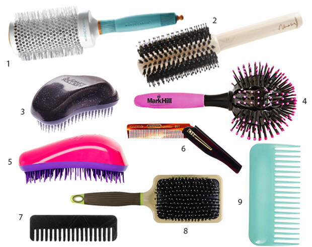 В 2013 году российский парикмахер Игорь Кимяшов, отчаявшись найти подходящие для работы расчески, решил выпускать свои. Сегодня под маркой Игоря Natural Brush (2) выходят расчески с корпусами из белого клена и с натуральной щетиной кабана или дикобраза. Керамические расчески с функцией ионизации, как у Moroccanoil (1), рекомендуется использовать в процессе укладки волос феном — они способствуют быстрому испарению воды и сокращают время воздействия горячего воздуха; гребни Macadamia (8) пропитаны аргановым маслом и хорошо увлажняют; «двое из ларца» — английские Tangle Tweezer (3) и испанские Dessata (5) — подходят для склонных к спутыванию волос; похожие на ежей Mark Hill (4) позволяют быстро сделать естественные локоны.