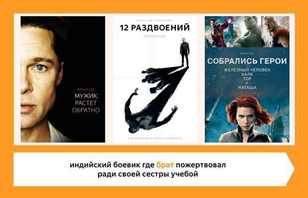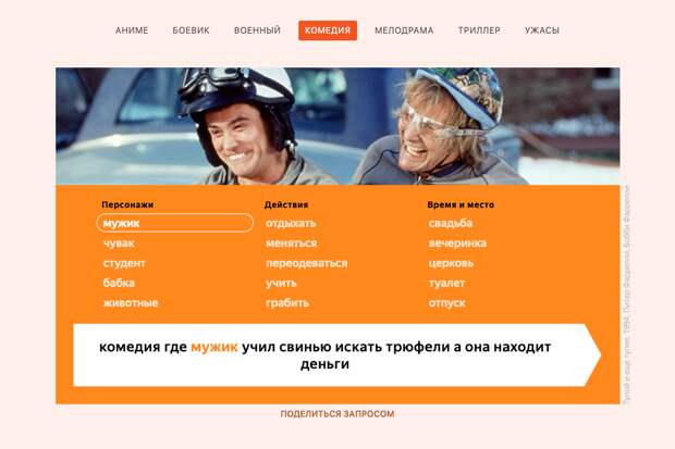 Исследование проводилось в несколько этапов. Сперва команда «Яндекса» изучала запросы за 2017-2019 год с формулировками вроде «фильм в котором» или «триллер где» (здесь и далее пунктуация и орфография поисковых запросов сохранена. — «РБК Стиль»), часть из которых изобиловала повторами.