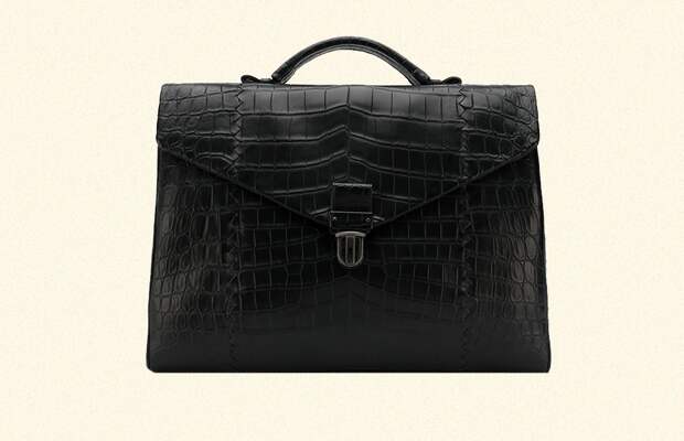 Аксессуары из кожи крокодила значительно легче, чем изделия из других типов кожи, так что можно спокойно загружать этот портфель всем необходимым: уместятся и компьютер, и зарядки, и папки с важными документами.Дубленка Kiton ₽718 000