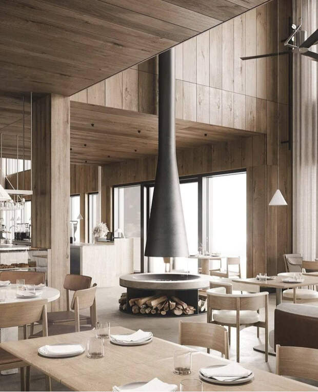 Интерьер ровно такой, какой нужен Москве с ее унылым зимним климатом: светлый бетон, сухоцветы, много дерева — винтажная мебель и деревянные балки. Скандинавия, но легкая и летняя, а не продуваемая всеми ветрами.