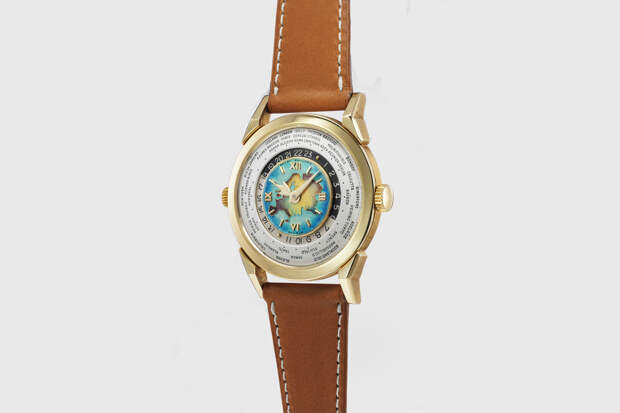 Самым заметным фаворитом, к которому было приковано внимание публики, стали часы Patek Philippe «Silk Road» (Ref. 2523) 1953 года выпуска. Редкая модель в 36-миллиметровом корпусе из желтого золота оснащена функцией мирового времени. Широкое внешнее кольцо с названиями 41 города и более узкое двухцветное с 24-часовой разметкой окружало циферблат со стрелками на фоне эмалевой карты. В серии было выпущено 11 подобных часов с картой в технике перегородчатой эмали (три из них хранятся в музее Patek Philippe). Причем в пяти моделях была использована карта Северной Америки, в трех — Южной Америки и еще в трех — Евразии. На последний аукцион Phillips выставили часы с Евразийским …